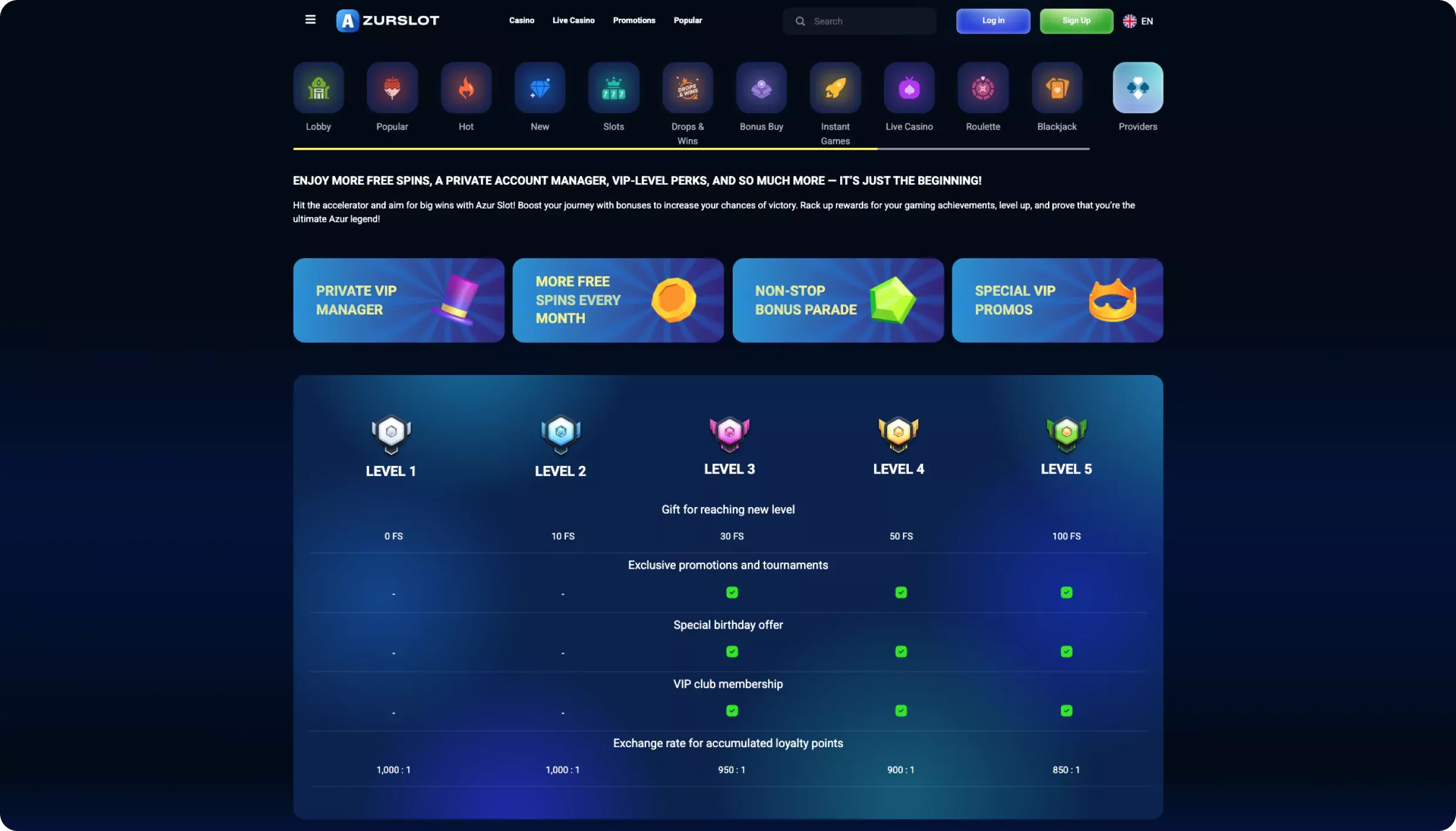 - Treueprogramm: 5-stufiges VIP-System mit wachsenden Vorteilen